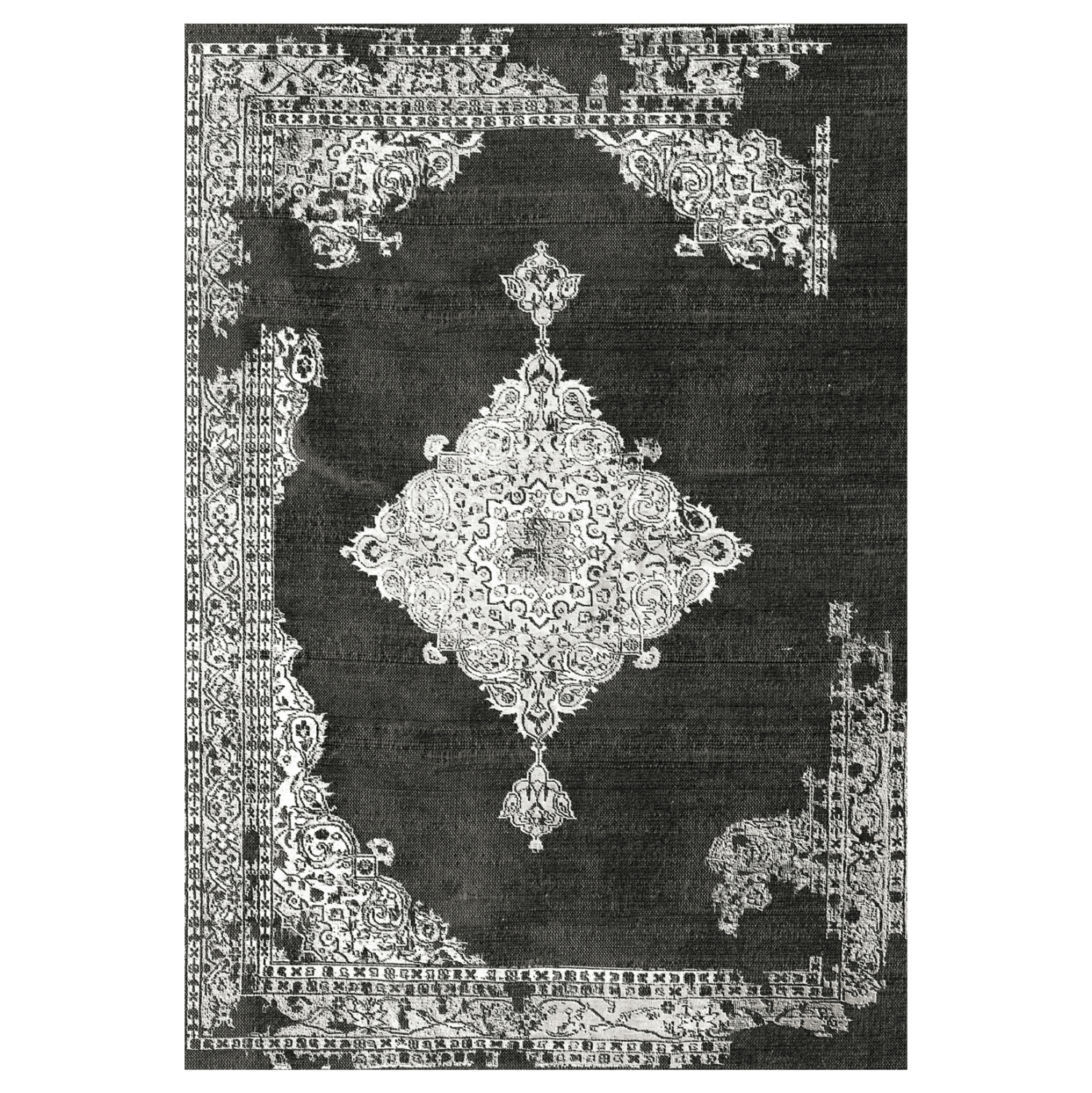 Αυτό το χαλί έχει κυρίαρχο φόντο σε γκρι-άσπρο με ευδιάκριτο σχέδιο στο κέντρο και γενικά το στυλ του χαλιού παραπέμπει σε ξεβαμμένη τοιχογραφία και σίγουρα θα αποτελέσει αντικείμενο συζητήσεων στο σαλόνι σας. Άλλωστε, η γοητεία πού ασκεί το χαλί είναι τόσο δυνατή, πού κανένα δεν αφήνει αδιάφορο.
