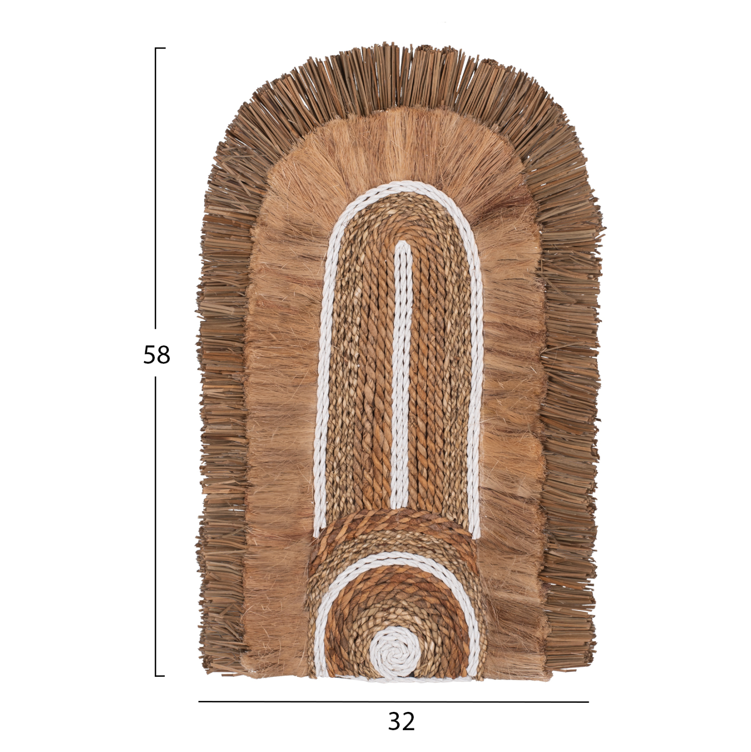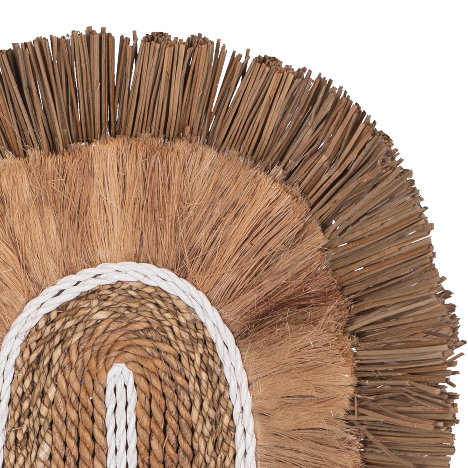 Το διακοσμητικό αυτό είναι κατασκευασμένο από κομμάτια καλαμιάς με ίνες και σχοινί αμπακά στο εμπρός μέρος. Η κάνναβη της Μανίλας, γνωστή και ως abaca, είναι ένας τύπος ίνας με στιλπνό χρώμα που λαμβάνεται από το Musa textilis (συγγενής των βρώσιμων μπανανών), που ονομάζεται επίσης κάνναβη Μανίλας καθώς και abaca. Το Abaca είναι μια εξαιρετικά ισχυρή ίνα, πολύ ακριβή και έχει πολλές φορές υψηλότερη τιμή από τον ξυλοπολτό. Το όνομα αναφέρεται στην πρωτεύουσα των Φιλιππίνων, έναν από τους κύριους παραγωγούς κάνναβης Μανίλας. Η καλλιέργεια φυτών abaca μπορεί να μειώσει τη διάβρωση, να αυξήσει τη βιοποικιλότητα και να εμπλουτίσει το έδαφος. Τέλος, είναι ανθεκτικό στο νερό και την υγρασία.