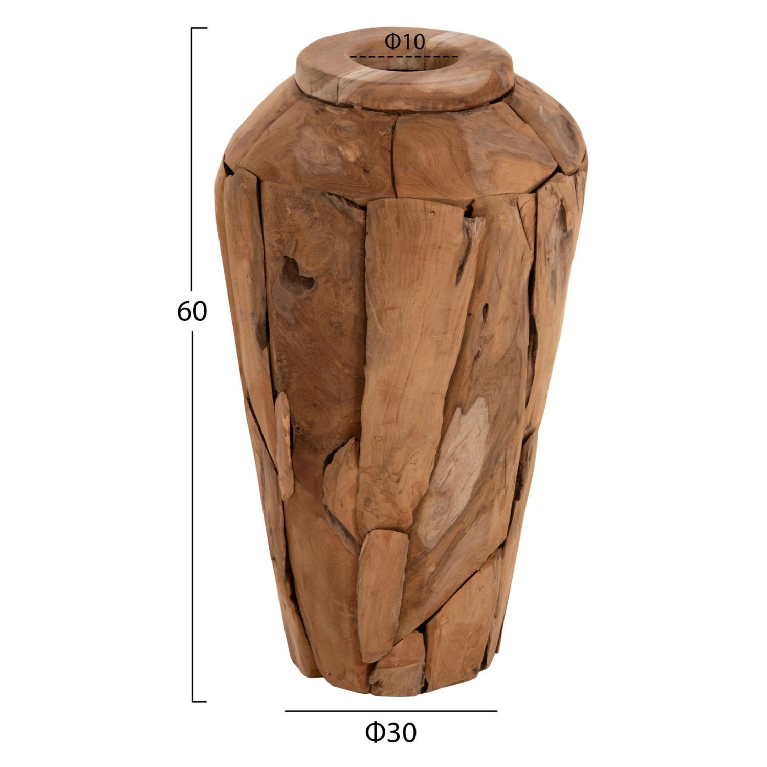 ΔΙΑΚΟΣΜΗΤΙΚΟ ΒΑΖΟ ZENIA HM7919 ΑΠΟ ΚΟΜΜΑΤΙΑ ΑΝΑΚΥΚΛΩΜΕΝΟΥ ΞΥΛΟΥ TEAK ΣΕ ΦΥΣΙΚΟ Φ30x60Y εκ.
