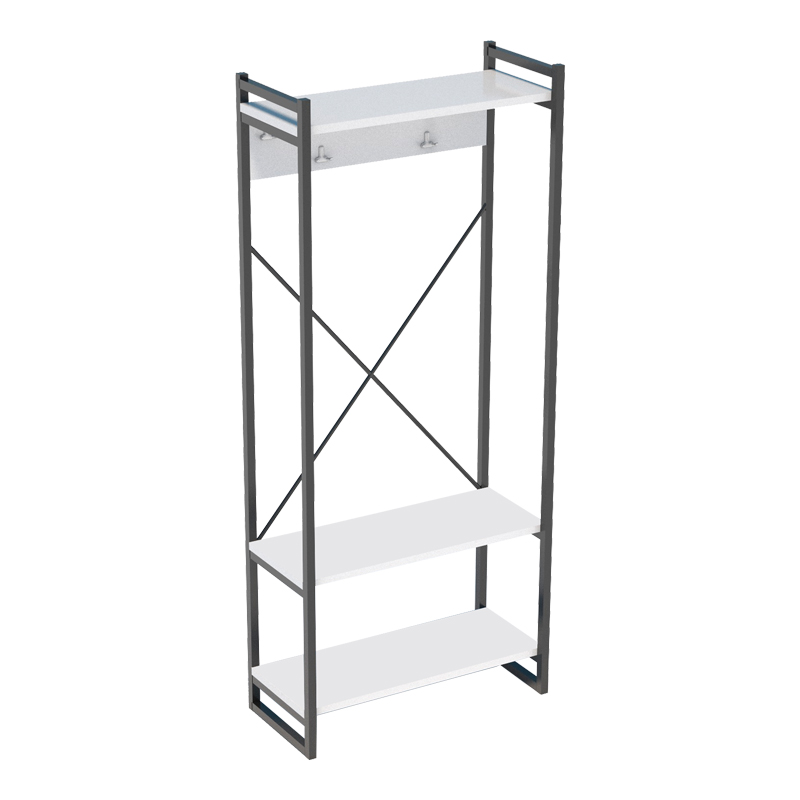 Έπιπλο εισόδου με κρεμάστρα Baker pakoworld μαύρο μέταλλο και μελαμίνη σε λευκή απόχρωση 90x34x180εκ