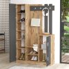 Έπιπλο εισόδου Saron με καθρέπτη pakoworld σε oak-ανθρακί απόχρωση 113,6×37,5×180εκ
