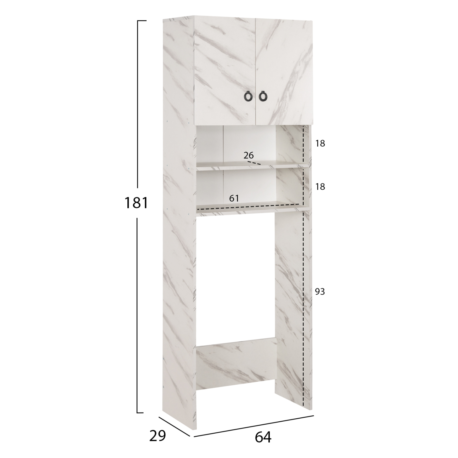 ΕΠΙΠΛΟ ΠΛΥΝΤΗΡΙΟΥ ΜΕ ΡΑΦΙΑ&ΝΤΟΥΛΑΠΙ TERRY ΛΕΥΚΟ ΜΑΡΜΑΡΟ ΕΦΕ HM9122.12 64Χ29Χ181Υεκ.