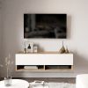 - Φέρει δύο ντουλάπια τα οποία είναι ιδανικά για κλειστή οργάνωση των συσκευών που συνδέονται με την τηλεόραση σας, των αξεσουάρ τους και άλλων αντικειμένων της καθημερινότητας σας. Διαθέτει επίσης ράφια ανοιχτής αποθήκευσης στο κάτω μέρος του.