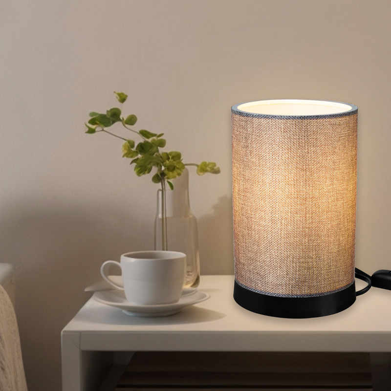 Επιτραπέζιο φωτιστικό Fana pakoworld ύφασμα σε γκρι απόχρωση Φ14×21εκ
