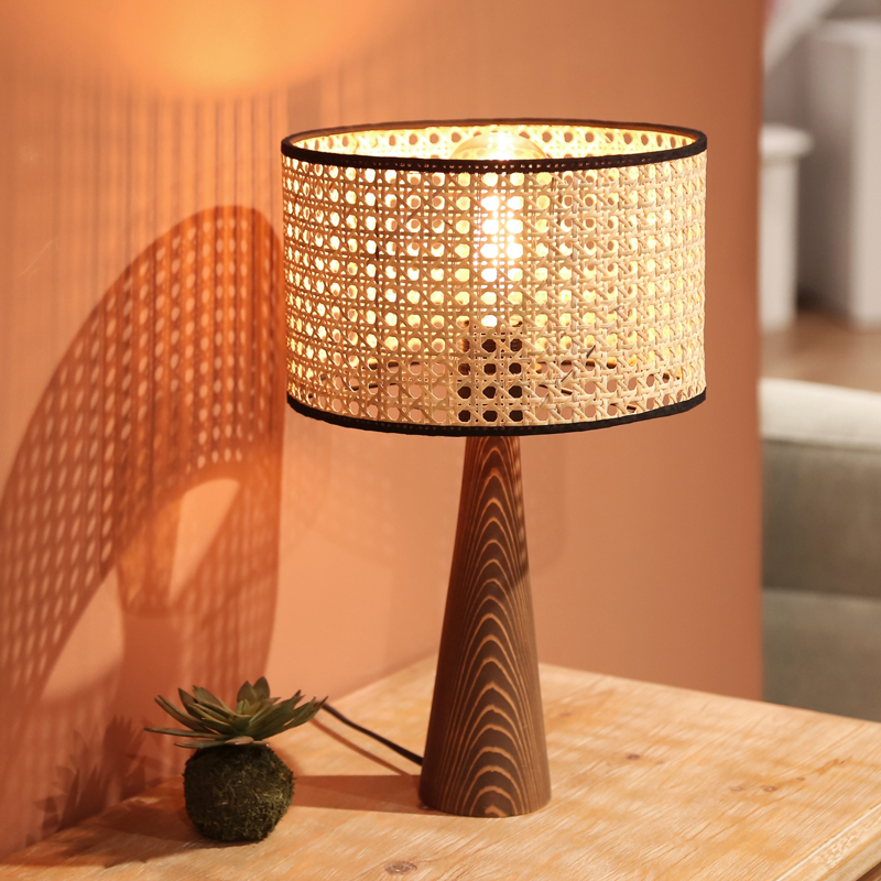 Επιτραπέζιο φωτιστικό Retroa pakoworld ξύλο οξιάς και pe rattan σε φυσικό χρώμα Φ24×38εκ