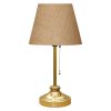 Το «καπέλο» έχει τραπεζοειδές κυκλικό σχήμα σε χρώμα μπεζ της άμμου, με ξύλινους δακτύλιους στις άκρες, ενώ ο διακόπτης του φωτιστικού είναι σε στυλ παραδοσιακού κρεμαστού διακόπτη δίπλα στον λαμπτήρα σε χρυσή αλυσιδούλα.