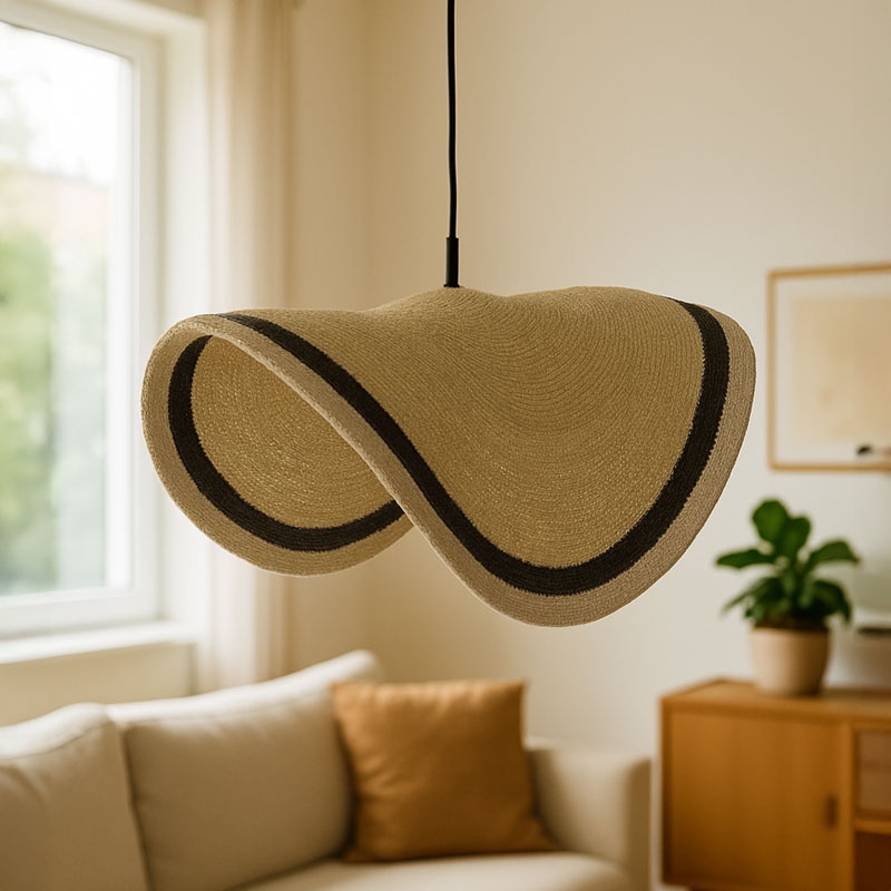 Φωτιστικό οροφής Hatchie Inart φυσικό-μαύρο-λευκό ψάθα-μέταλλο Φ100×133εκ