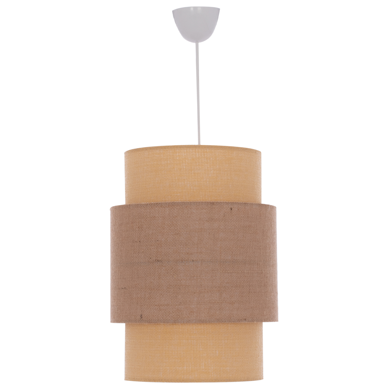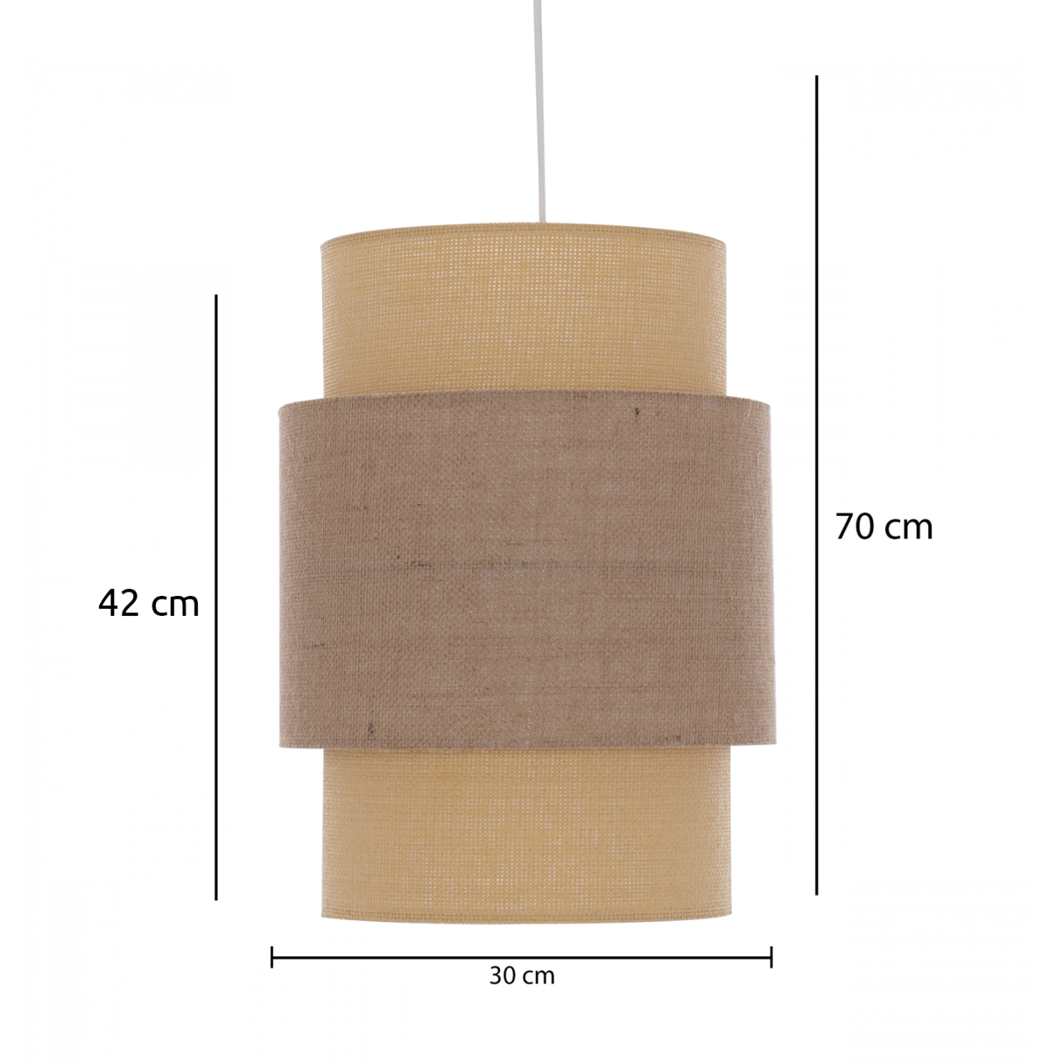 ΥΛΙΚΑ ΚΑΤΑΣΚΕΥΗΣ: Τα τύμπανα αποτελούνται από ύφασμα. Τα εσωτερικά κυλινδρικά τύμπανα είναι σε χρώμα μπεζ ενώ τα εξωτερικά σε μπεζ της άμμου. Ο σκελετός του φωτιστικού είναι από πολυαιθυλένιο.