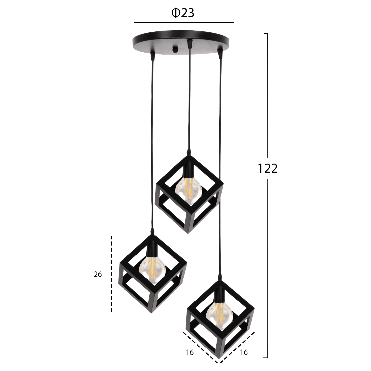 ΦΩΤΙΣΤΙΚΟ ΟΡΟΦΗΣ ΚΡΕΜΑΣΤΟ HM4036 3 ΚΥΒΟΙ ΜΑΥΡΟ ΜΕΤΑΛΛΟ Φ23x122Yεκ.