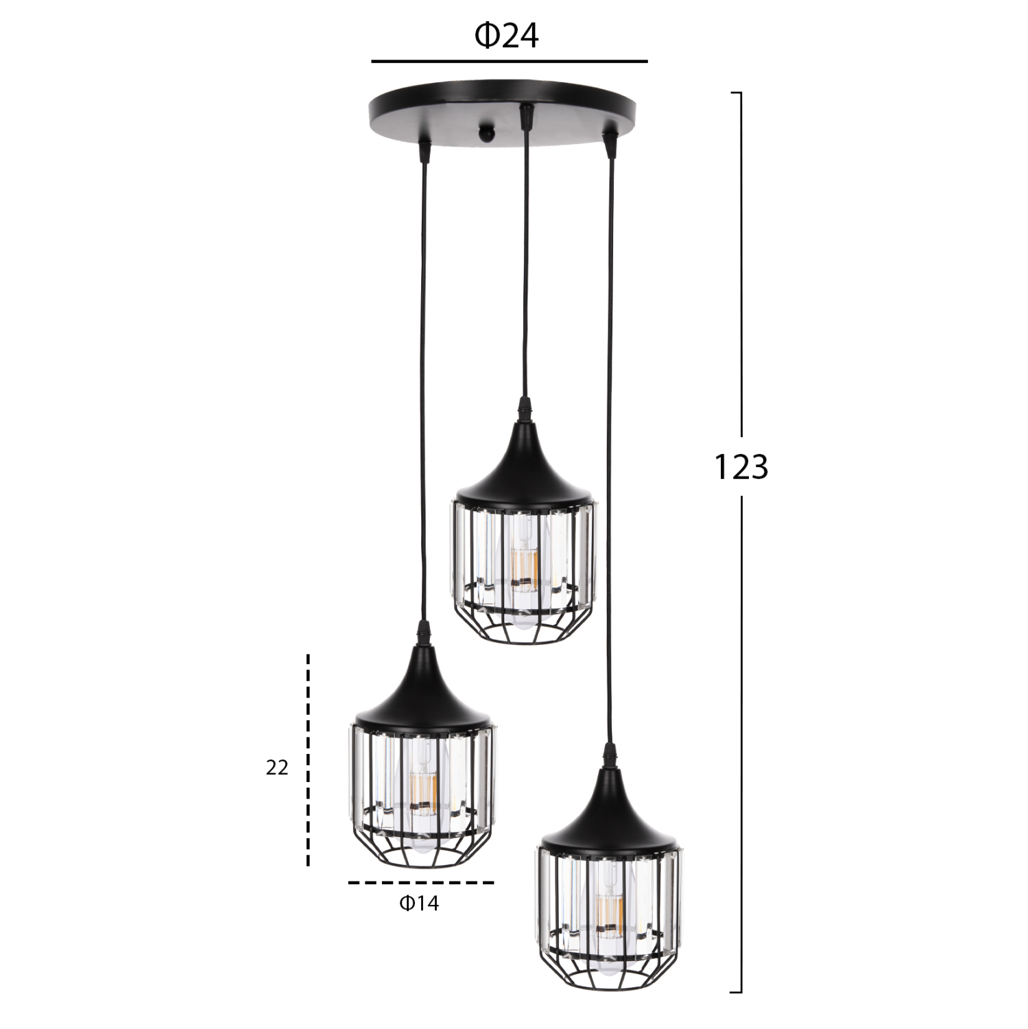ΦΩΤΙΣΤΙΚΟ ΟΡΟΦΗΣ ΚΡΕΜΑΣΤΟ HM4084 3ΦΩΤΟ ΜΑΥΡΟ ΜΕΤΑΛΛΟ-ΓΥΑΛΙ Φ14x123Yεκ.