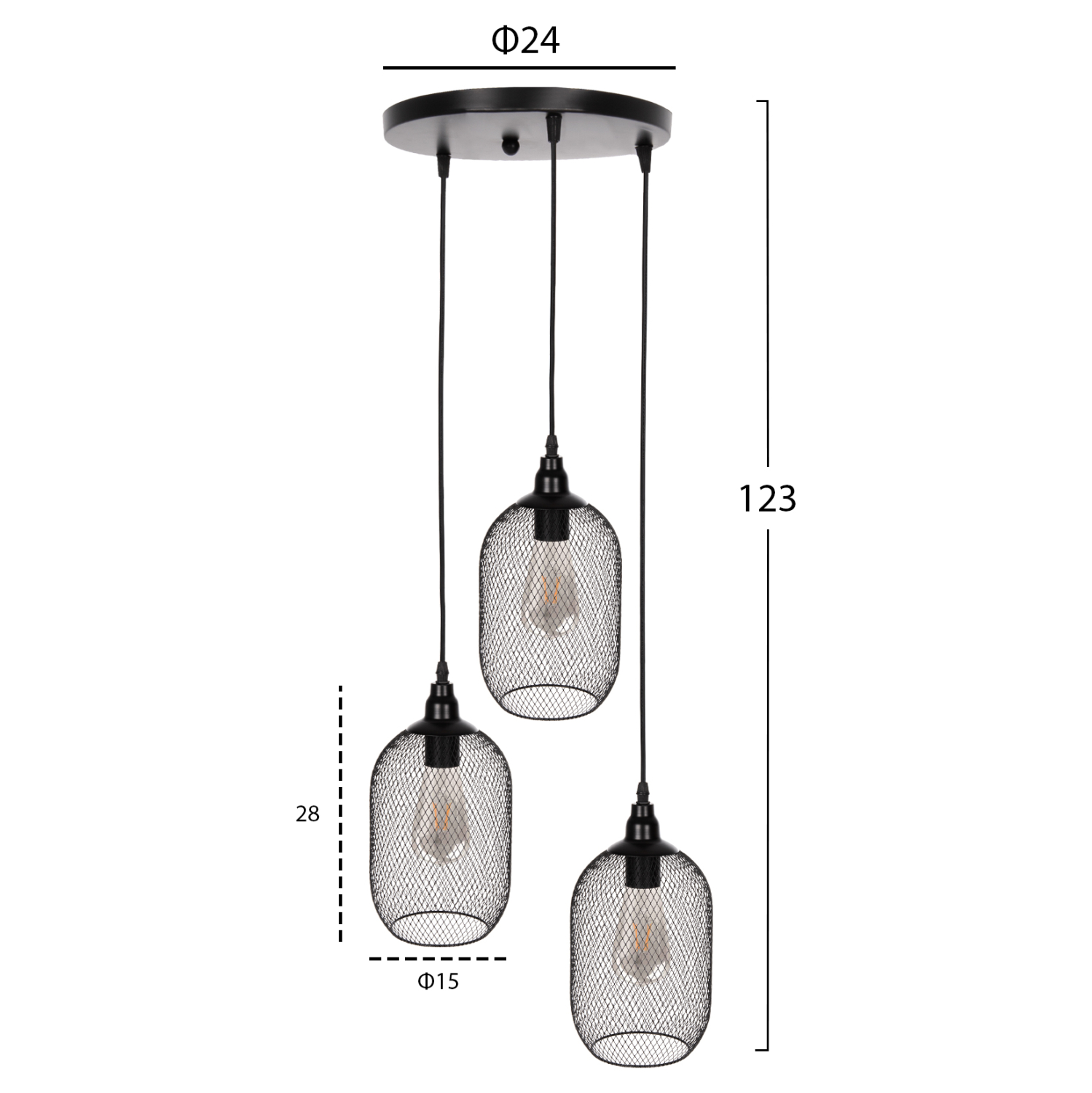 ΦΩΤΙΣΤΙΚΟ ΟΡΟΦΗΣ ΚΡΕΜΑΣΤΟ HM4104 3ΦΩΤΟ ΜΑΥΡΑ ΜΕΤΑΛΛΙΚΑ ΚΑΠΕΛΑ Φ24×123Υεκ.