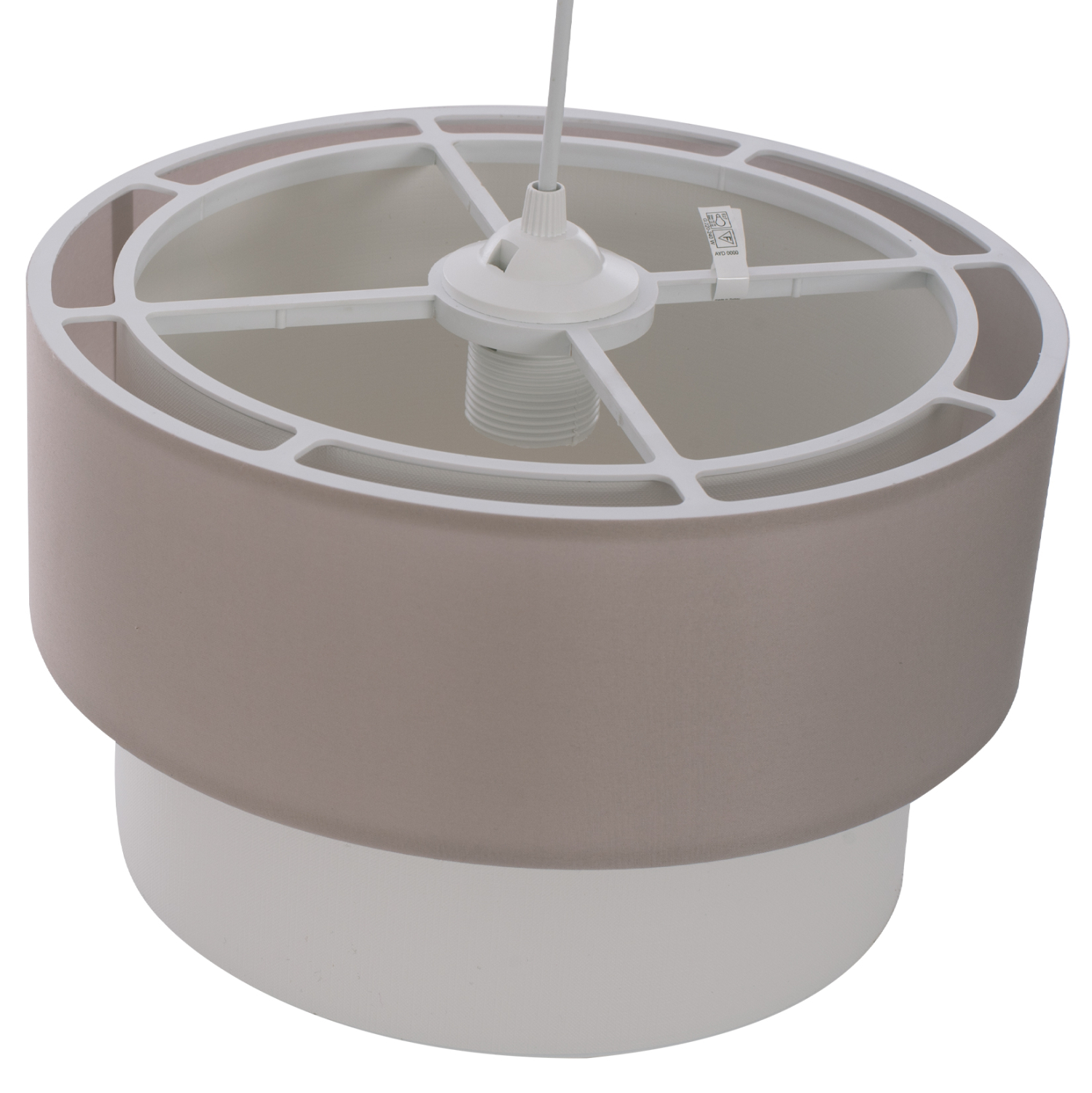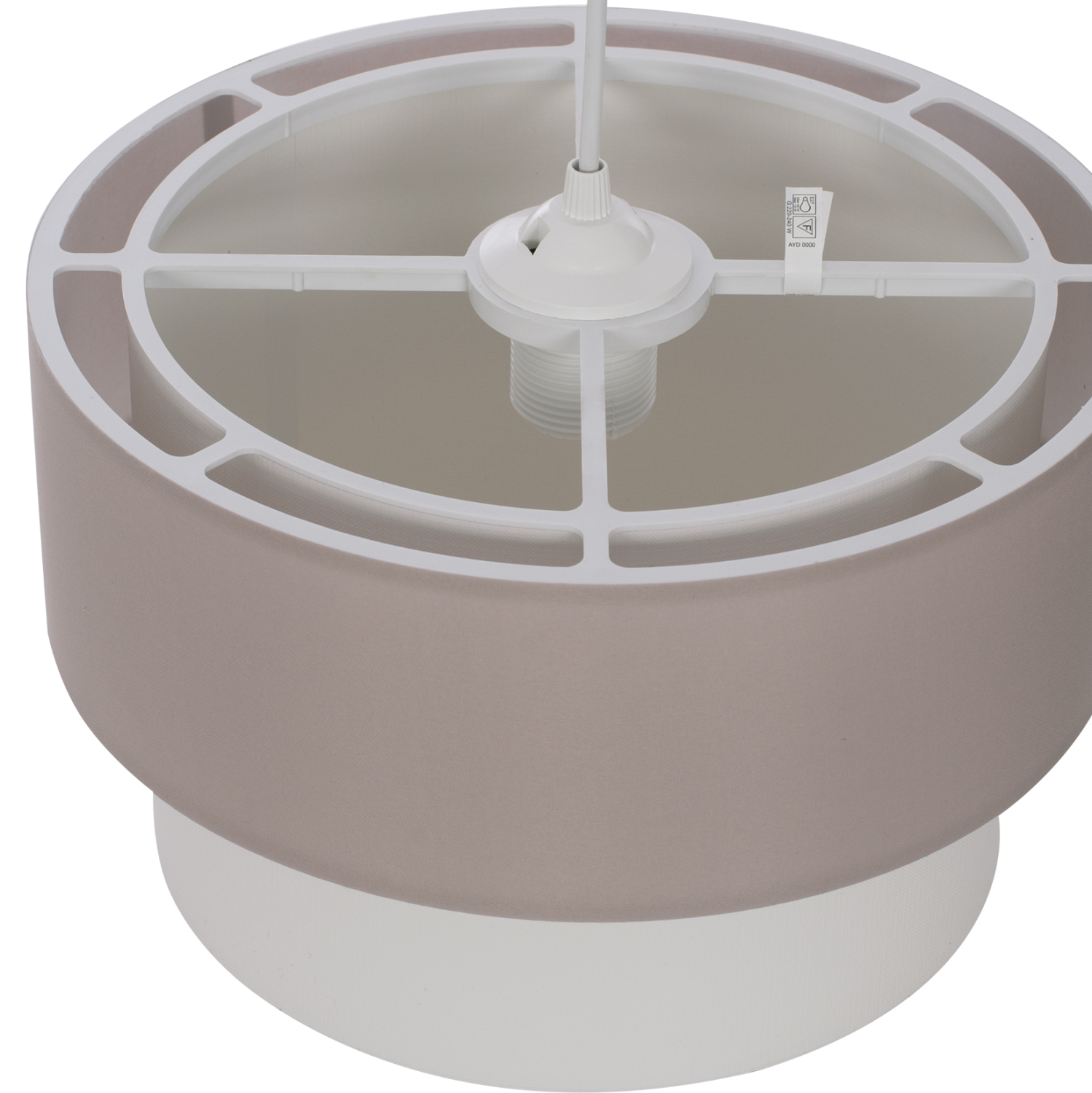 Η αισθητική υπεροχή αυτού του φωτιστικού θα το κάνει να ξεχωρίζει στον χώρο σας γιατί έχει μια απλοϊκή αλλά καλλιτεχνική εμφάνιση. Ο ακρυλικός του σκελετός είναι άψογα κατασκευασμένος ενώ το τύμπανο έχει δύο δακτυλίους. Ο εξωτερικός δακτύλιος είναι κατασκευασμένος από ύφασμα σε ΜΠΕΖ χρώμα, ενώ το εσωτερικό από ΕΚΡΟΥ ύφασμα. Το αποτέλεσμα είναι εξαιρετικά κομψό σε εμφάνιση. Καταφέρνει να συνδυάσει μια ελκυστική μοντέρνα βιομηχανική γοητεία με το ιδανικό μέγεθος, προσθέτοντας έτσι μια όμορφη διακόσμηση στην οροφή σας. Το ρυθμιζόμενο ύψος του μπορεί να προσφέρει διαφορετικά επίπεδα φωτεινότητας και οπτικής απόλαυσης. Εκτός από διάφορα δωμάτια του σπιτιού σας, μπορεί, επίσης, να ταιριάξει και σε επαγγελματικούς χώρους όπως εστιατόρια, καφέ, ξενοδοχεία κτλ. Τα χρώματα του φωτιστικού και το design αιχμαλωτίζει τα βλέμματα, αλλά ταυτόχρονα απαιτεί και ιδιαίτερη διακοσμητική συνοχή για να αναδείξει πλήρως τις αισθητικές αρετές του.