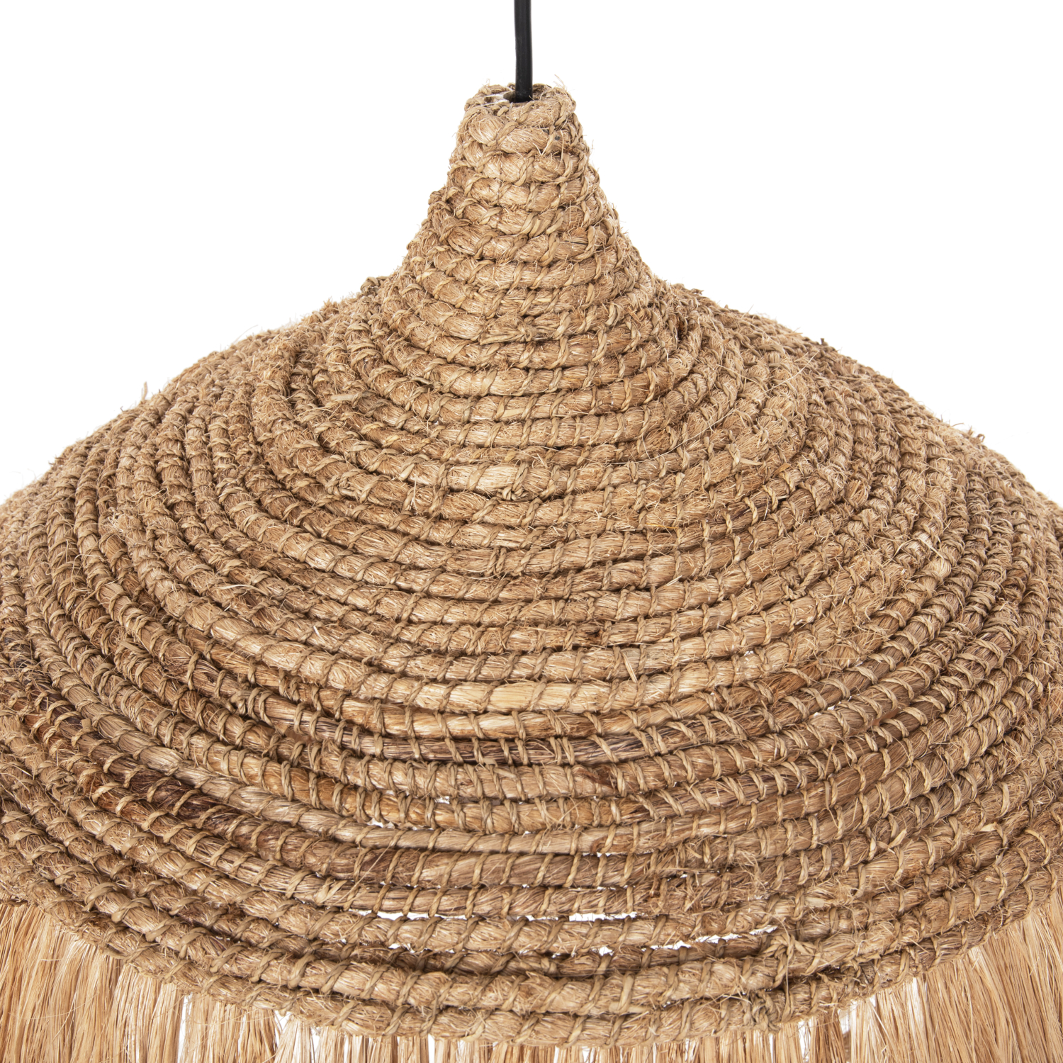 Hm7777- Kρεμαστό φωτιστικό—- Αν επιθυμείτε να διακοσμήσετε το χώρο σας με ένα φωτιστικό σε boho στυλ, αυτό είναι μια χαρακτηριστική επιλογή. Είναι ένα μονόφωτο με «καπέλο» σε σχήμα καμπάνας φτιαγμένο από ανακυκλωμένες ίνες κάνναβης Μανίλας και ιδιαιτέρως μακριά κρόσια από τις ίδιες ίνες.