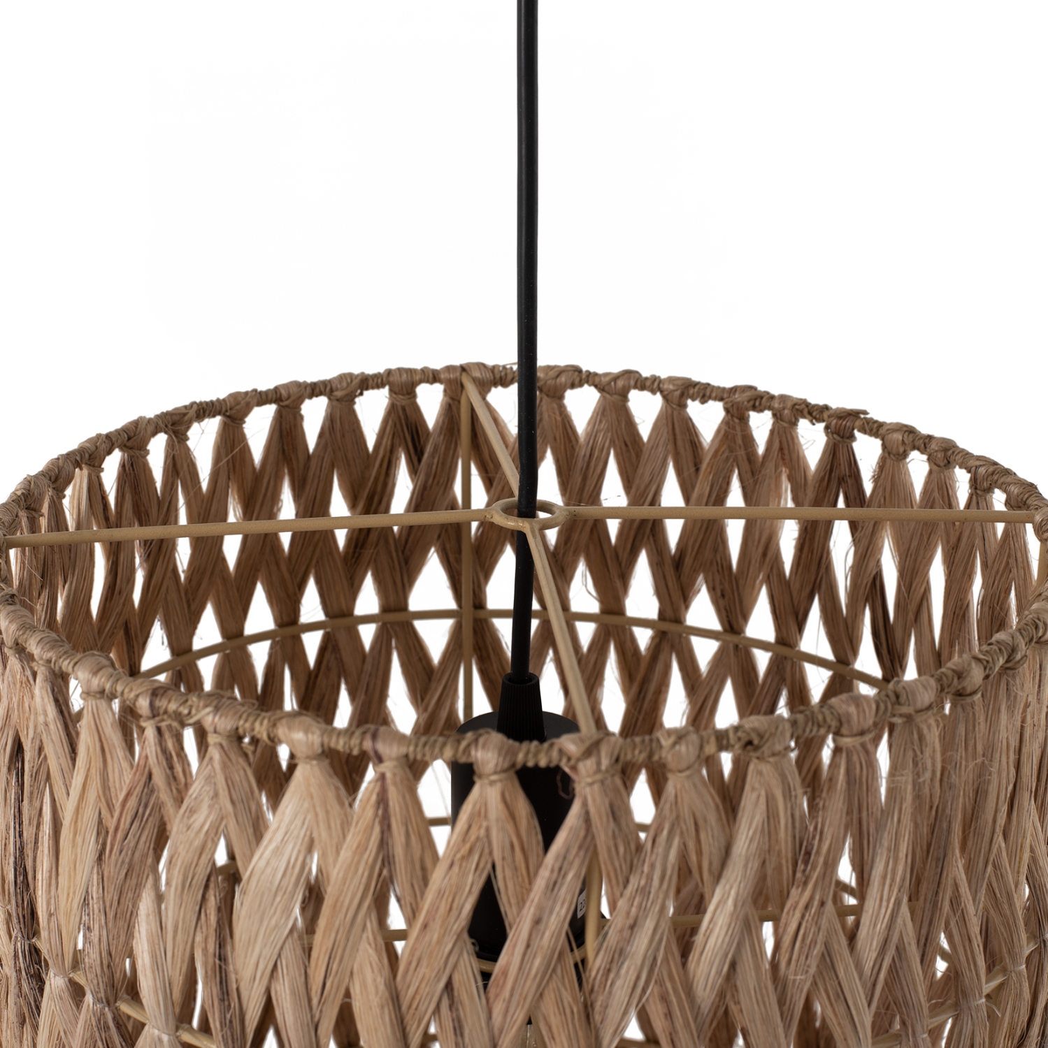 Hm7781- Kρεμαστό φωτιστικό—- Αν επιθυμείτε να διακοσμήσετε το χώρο σας με ένα φωτιστικό σε boho στυλ, αυτό θα σας τραβήξει την προσοχή. Είναι ένα μονόφωτο φωτιστικό με μακρύ κυλινδρικό «καπέλο» φτιαγμένο από ίνες κάνναβης Μανίλας ή αλλιώς αμπακά, σε φυσικό χρώμα σε 3 σειρές με πλεκτή χιαστί διάταξη των ινών και κρόσια στο τελείωμα.