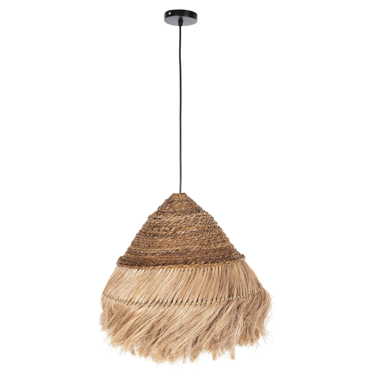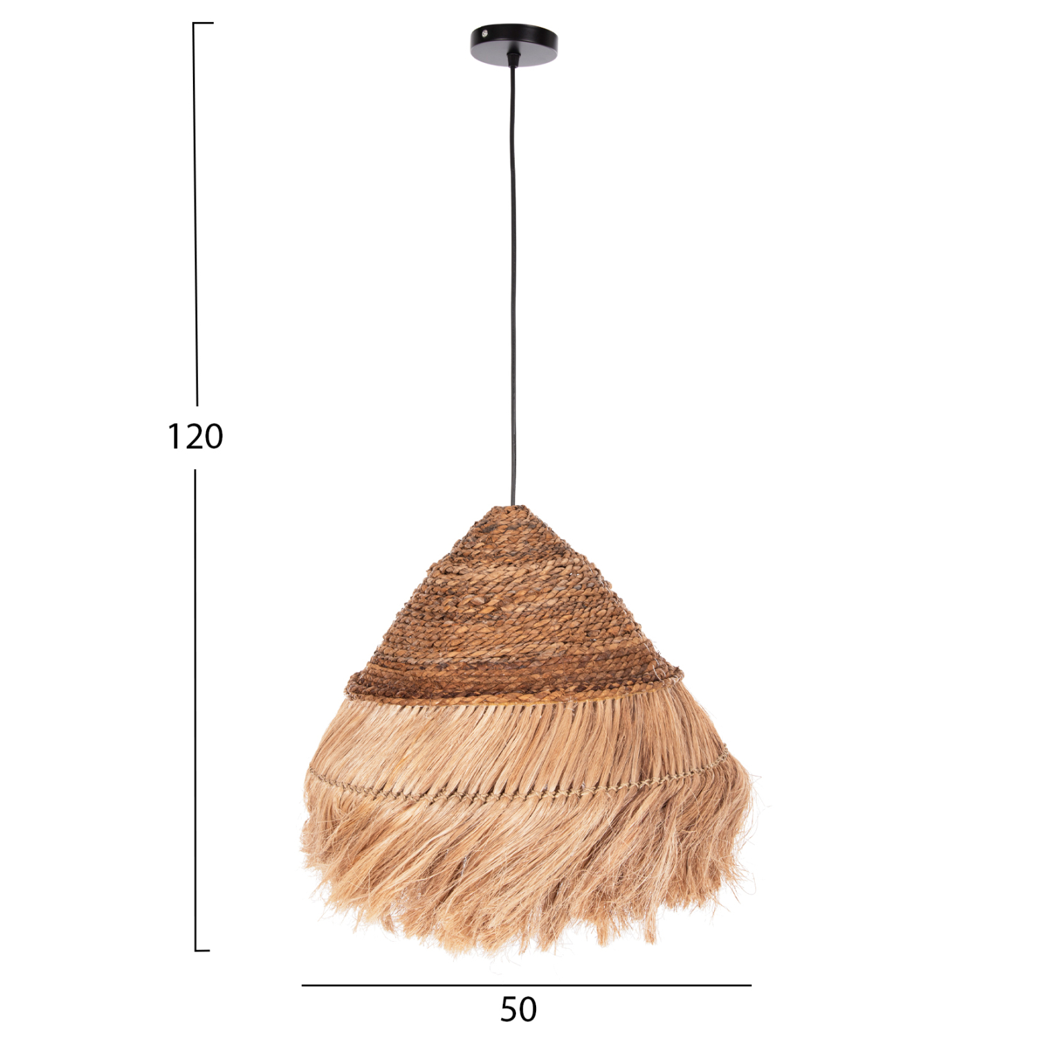 Hm7762- Kρεμαστό φωτιστικό—- Αν επιθυμείτε να διακοσμήσετε το χώρο σας με ένα φωτιστικό σε boho στυλ, αυτό είναι μια χαρακτηριστική επιλογή. Είναι ένα μονόφωτο φωτιστικό με «καπέλο» σε σχήμα στρογγυλής πυραμίδας φτιαγμένο από ίνες κάνναβης Μανίλας σε φυσικό χρώμα. Το ιδιαίτερο χαρακτηριστικό αυτού του φωτιστικού είναι ότι στο επάνω μέρος του καπέλου οι ίνες είναι πλεγμένες σαν σχοινί δίνοντας μια άλλη αισθητική στο φωτιστικό.