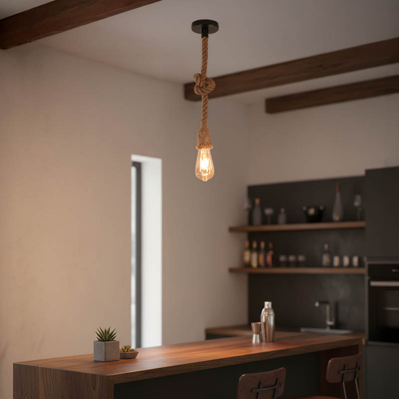 Φωτιστικό οροφής Ropily pakoworld φυσικό μέταλλο-σχοινί Φ1×100εκ