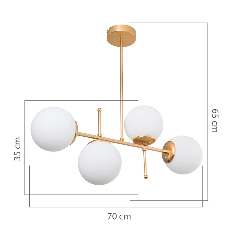 Φωτιστικό οροφής τετράφωτο PWL-1128 pakoworld Ε27 χρυσό 70x20x35εκ