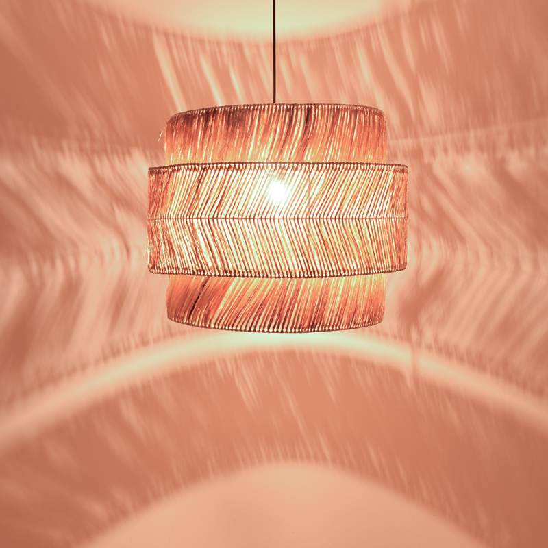 • Abaca: Το abaca είναι ένα φυσικό υλικό που προέρχεται από τις ίνες του φυτού Musa textilis (είδος μπανάνας), γνωστού και ως Manila hemp. Οι ίνες abaca εξάγεται από τον πολτό του στελέχους της μπανανιάς και είναι γνωστή για την αντοχή, την ανθεκτικότητα και την αιθέρια υφή της. Χρησιμοποιούνται ευρέως για την κατασκευή προϊόντων χειροτεχνίας όπως καλάθια, χαλιά, τσάντες και διακοσμητικά αντικείμενα. Τα κρεμαστά φωτιστικά από abaca είναι μια δημοφιλής επιλογή για σαλόνια, τραπεζαρίες και κρεβατοκάμαρες. Μπορούν να προσθέσουν μια τροπική ή boho αίσθητική σε κάθε χώρο.
