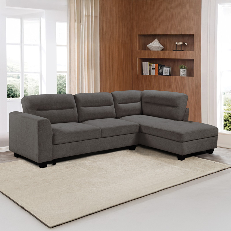 Γωνιακός καναπές αριστερή γωνία Camile pakoworld ύφασμα σε ανθρακί απόχρωση 270x174x95εκ
