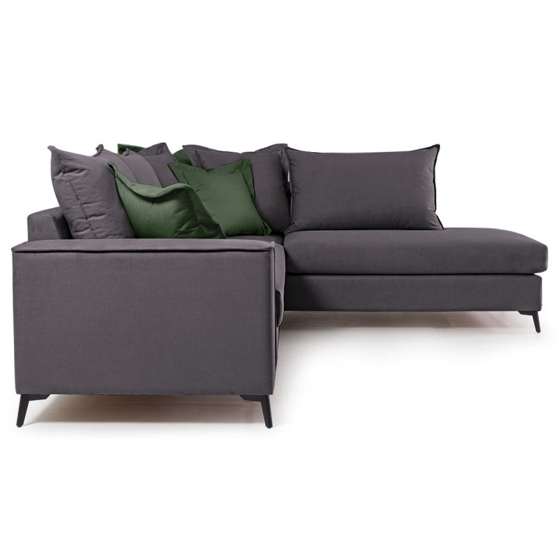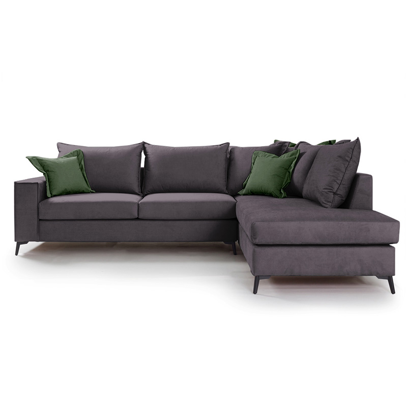 Γωνιακός καναπές αριστερή γωνία Romantic pakoworld ύφασμα ανθρακί-κυπαρισσί 290x235x95εκ