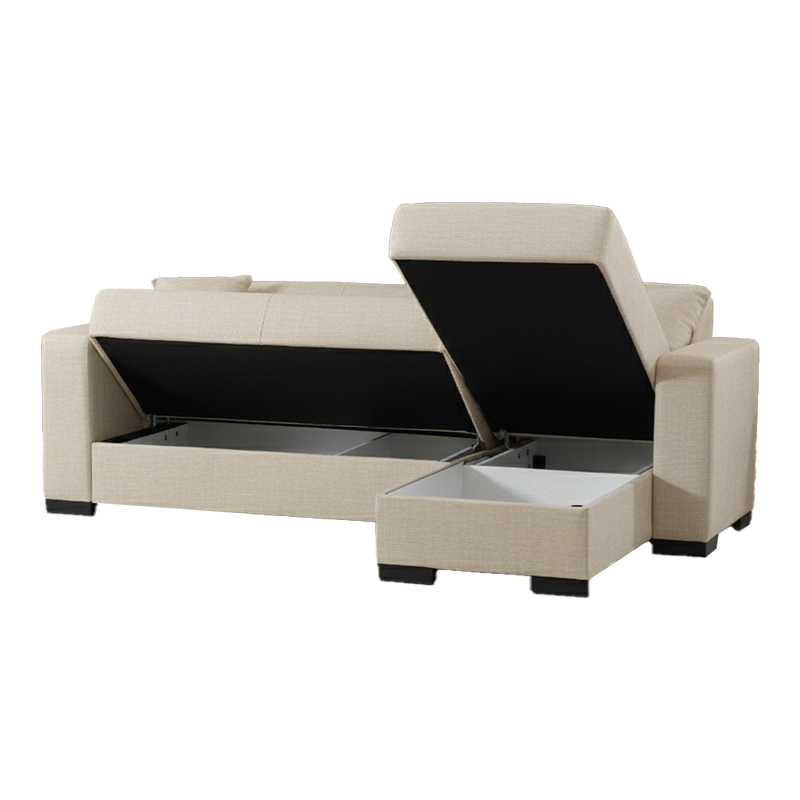 Γωνιακός καναπές-κρεβάτι αναστρέψιμος Dumma pakoworld ύφασμα κρεμ 226x148x86εκ