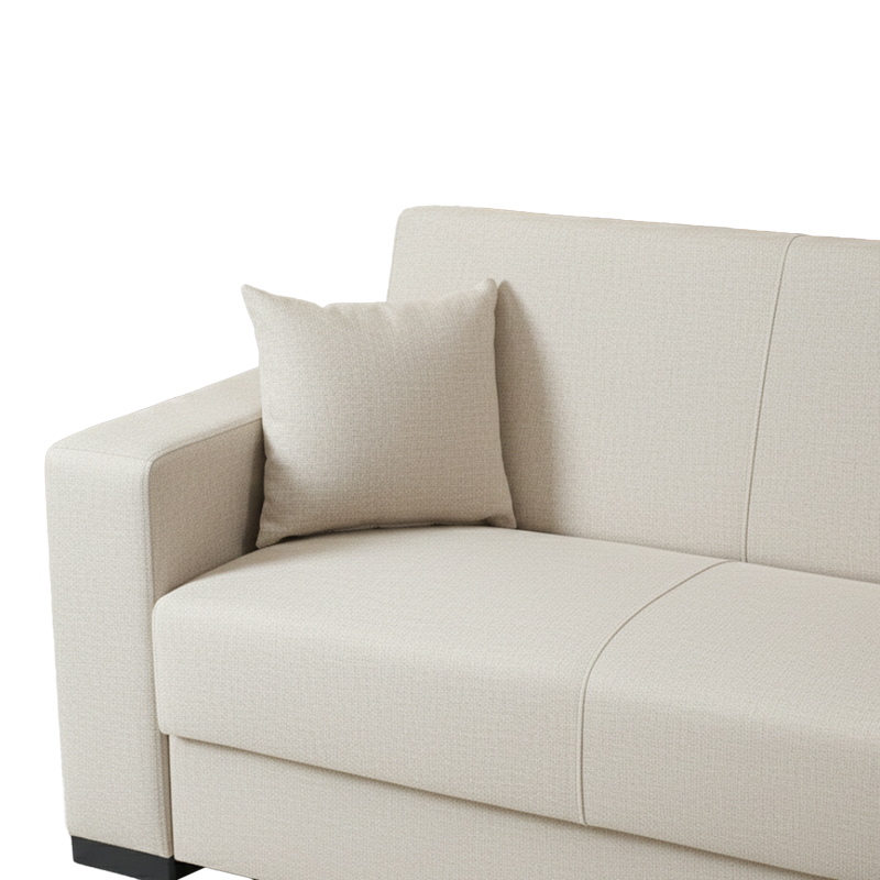 - Φέρει εύχρηστο μηχανισμό που με μία μόνο κίνηση ανασηκώνεται, μετατρέποντας τον καναπέ σε κρεβάτι και το αντίστροφο.