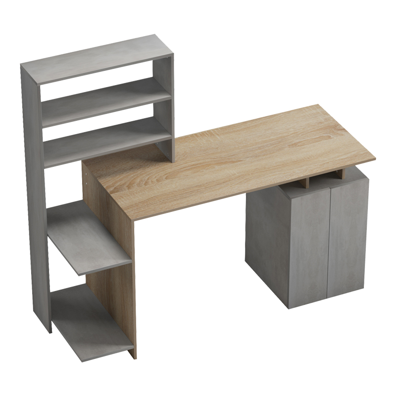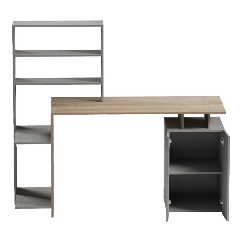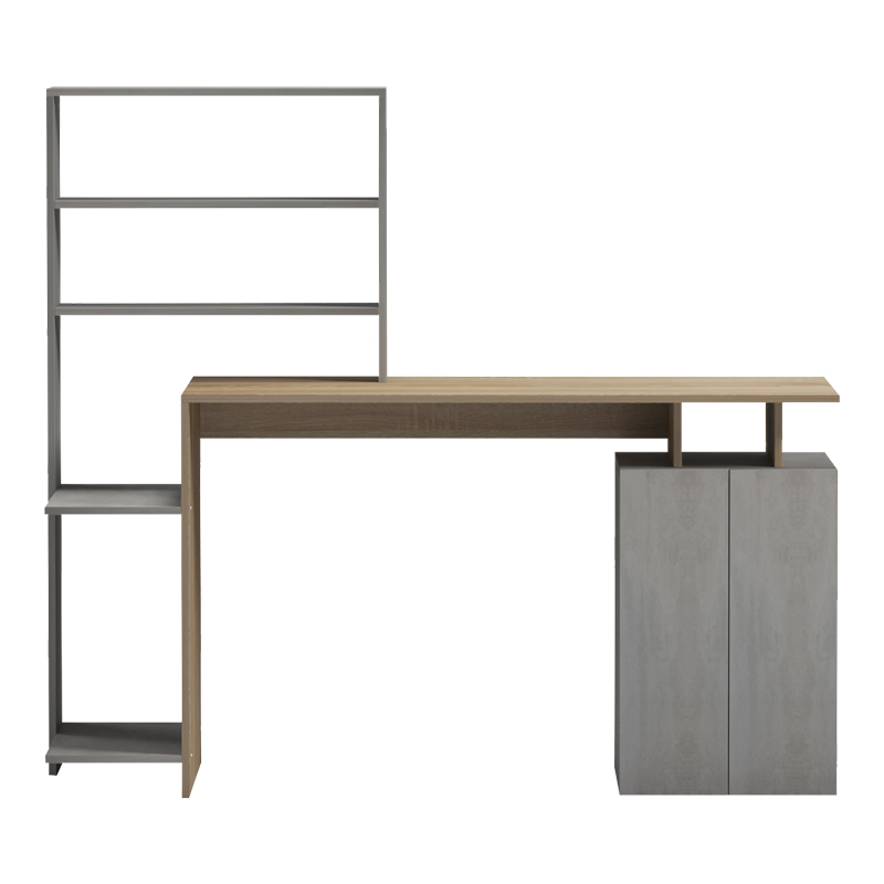 Γραφείο με βιβλιοθήκη και ντουλάπι Meza pakoworld sonoma-γκρι cement 146.3x55x128.8εκ