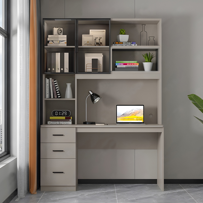 Αυτό το πολυλειτουργικό γραφείο συνδυάζει το κομψό σχεδιασμό και την εξαιρετική λειτουργικότητα. Με τα ευρύχωρα ράφια και ντουλάπι του, προσφέρει άπλετο χώρο για βιβλία, διακοσμητικά αντικείμενα και άλλα προσωπικά αντικείμενα. Το γραφείο είναι κατασκευασμένο από ανθεκτικά υλικά και διαθέτει τρία ευρύχωρα συρτάρια για την αποθήκευση των εγγράφων και των αξεσουάρ σας.Ιδανικό για σπουδαστές, επαγγελματίες που εργάζονται από το σπίτι ή για όσους αναζητούν έναν λειτουργικό και κομψό χώρο εργασίας.