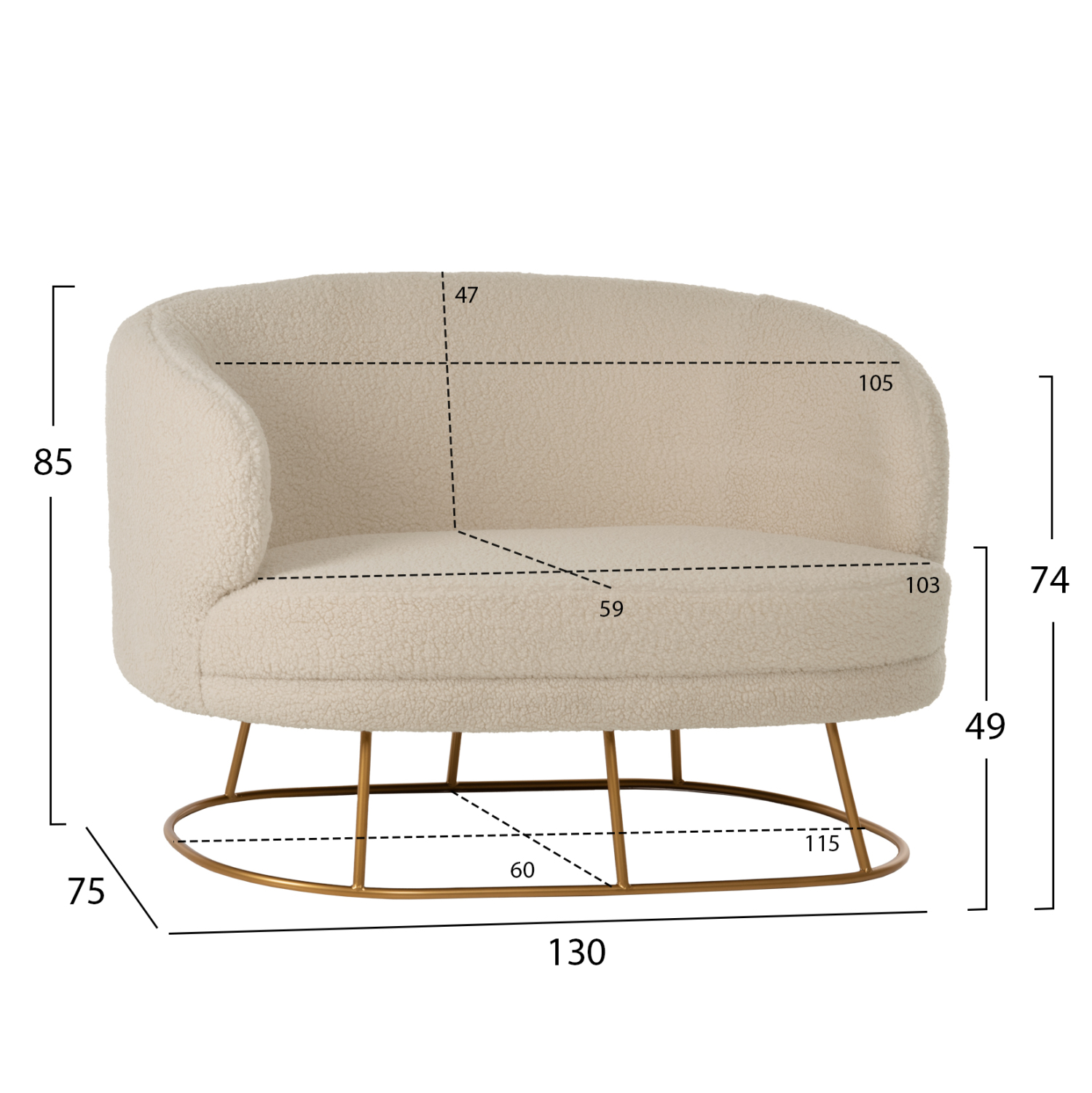 ΚΑΝΑΠΕΣ 2ΘΕΣΙΟΣ ARIEN HM8492.20 ΕΚΡΟΥ ΜΠΟΥΚΛΕ ΥΦΑΣΜΑ ΜΕ ΧΡΥΣΗ ΒΑΣΗ 130x75x85Y εκ.