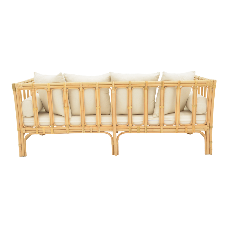 Καναπές Alessa pakoworld φυσικό rattan-λευκό ύφασμα με μαξιλάρια 200x100x76εκ