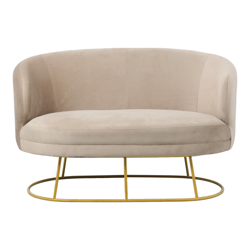 Καναπές διθέσιος Rony pakoworld βελούδο μπεζ-πόδι χρυσό μέταλλο 135x75x85εκ