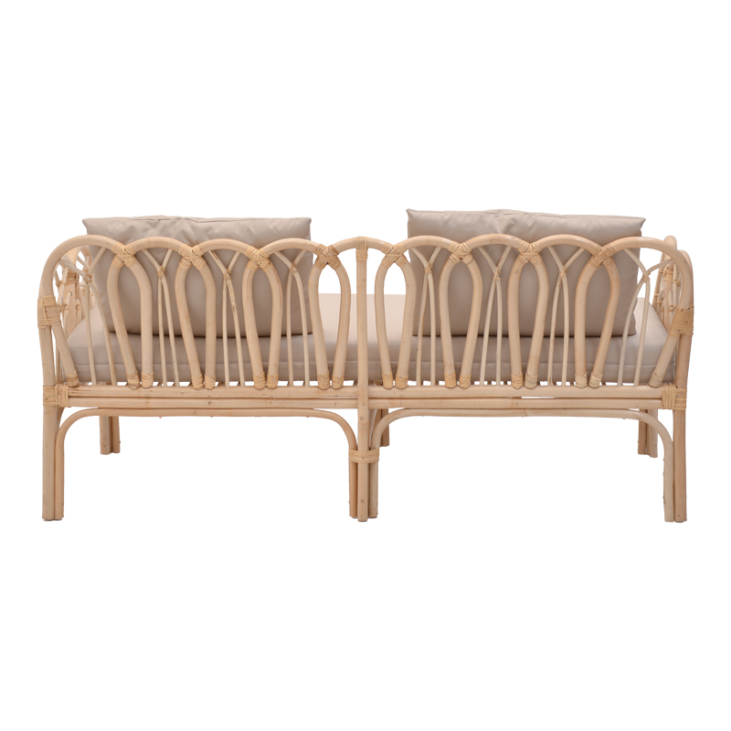 Καναπές διθέσιος Ytrone pakoworld rattan σε φυσική απόχρωση με μπεζ μαξιλάρι 166×61.5×71εκ
