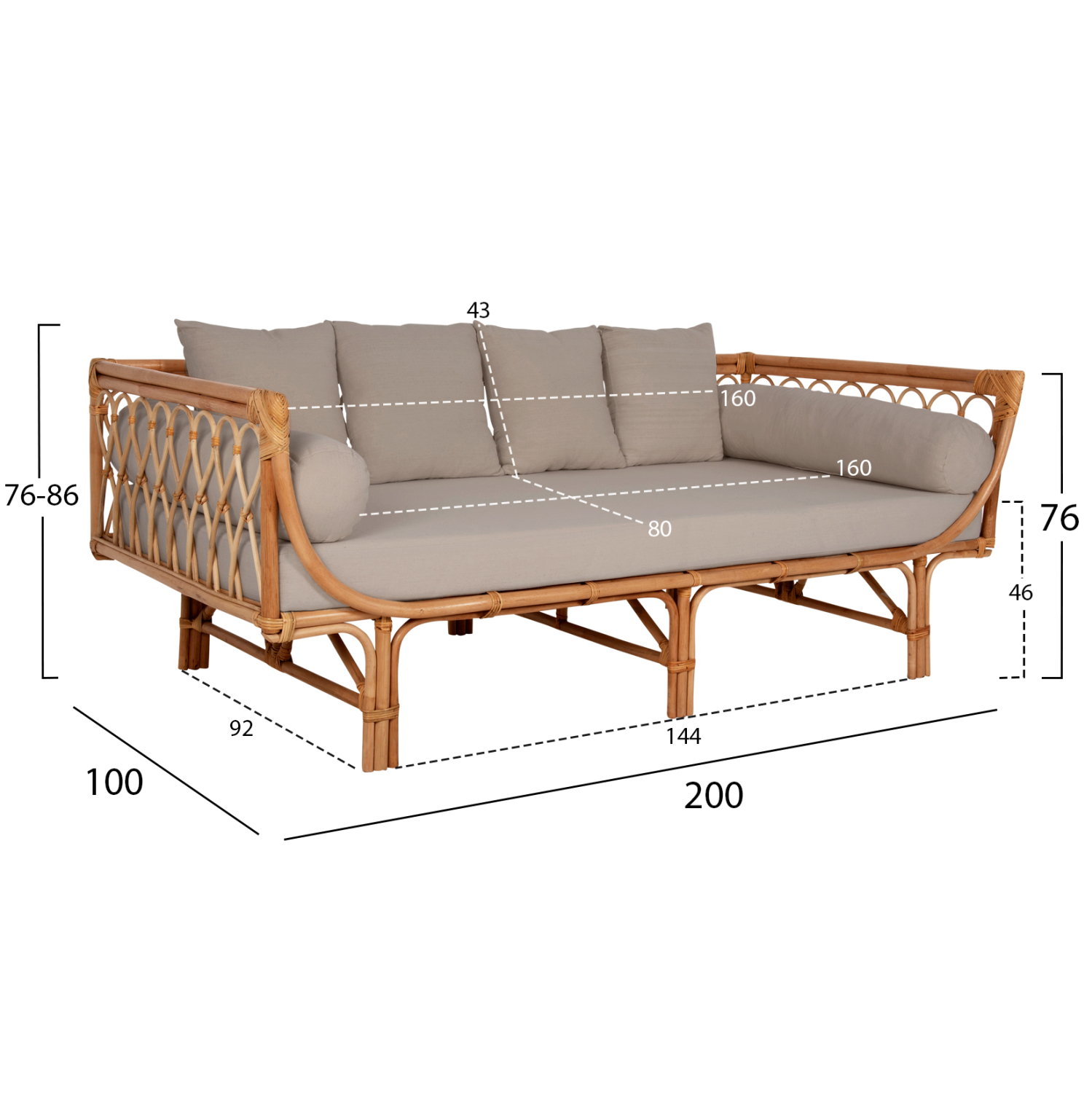 ΚΑΝΑΠΕΣ-ΚΡΕΒΑΤΙ ΕΞ. ΧΩΡΟΥ ALIKI HM9658 RATTAΝ ΦΥΣΙΚΟ-ΜΠΕΖ ΜΑΞΙΛΑΡΙΑ 200x100x76Yεκ.