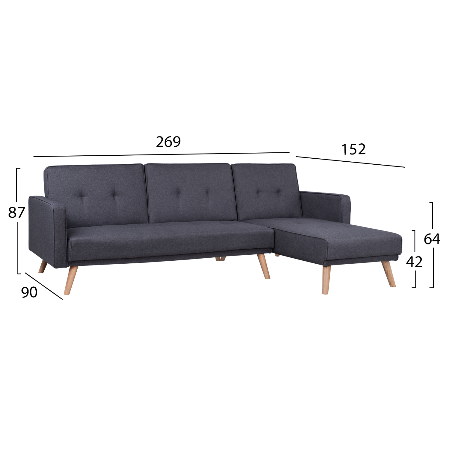 ΚΑΝΑΠΕΣ ΚΡΕΒΑΤΙ ΓΩΝΙΑ ΑΝΑΣΤΡΕΨΙΜΗ TALIA HM3153 ΜΕ ΓΚΡΙ ΥΦΑΣΜΑ 269X152X87Y εκ.