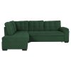 Ο καναπές γωνία JADE, επενδυμένος με καπιτονέ βελούδινο ύφασμα σε απόχρωση ΚΥΠΑΡΙΣΣΙ είναι ελκυστικότατος. Αποτελείται από ένα 3-θέσιο καναπέ κι ένα ανάκλιντρο που «φτιάχνει» την γωνία. Η γωνία αυτή είναι αριστερή και ο καναπές μπορεί να μετατραπεί σε κρεβάτι τραβώντας με τα ειδικά χερούλια το πρόσθετο ράντζο που υπάρχει κάτω από το μεγάλο μέρος του καναπέ. Το κάθισμα είναι άνετο και ευρύχωρο ενώ τα πόδια είναι από πολυαιθυλένιο σε ΜΑΥΡΟ χρώμα.