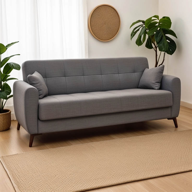 • Φέρει εύχρηστο μηχανισμό που με μία μόνο κίνηση ανασηκώνεται, μετατρέποντας τον καναπέ σε κρεβάτι και το αντίστροφο.