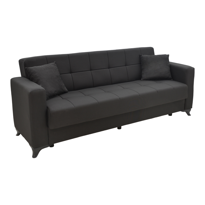 Καναπές-κρεβάτι με αποθηκευτικό χώρο τριθέσιος Modesto pakoworld μαύρο ύφασμα 215x85x80εκ