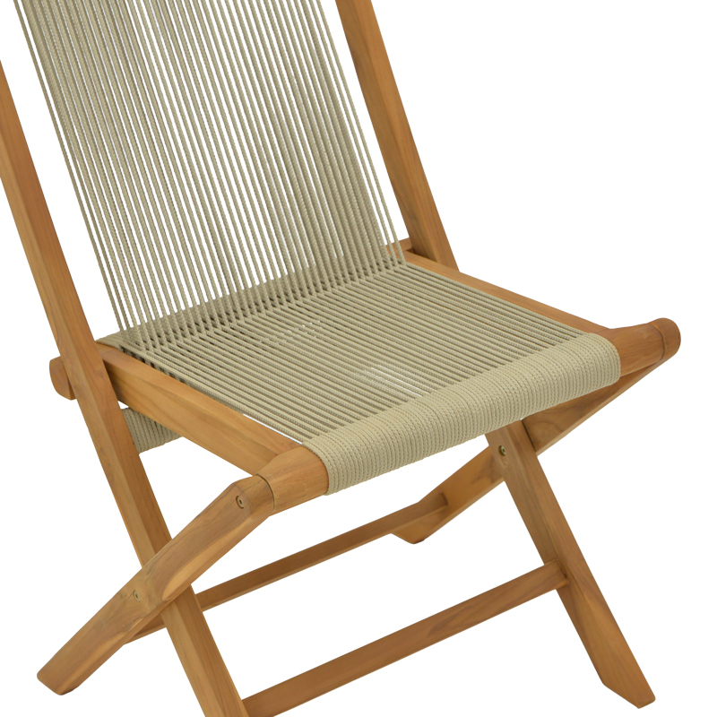 Καρέκλα Banou pakoworld πτυσσόμενη teak ξύλο και pe σχοινί σε φυσική απόχρωση 52.5x56x89εκ