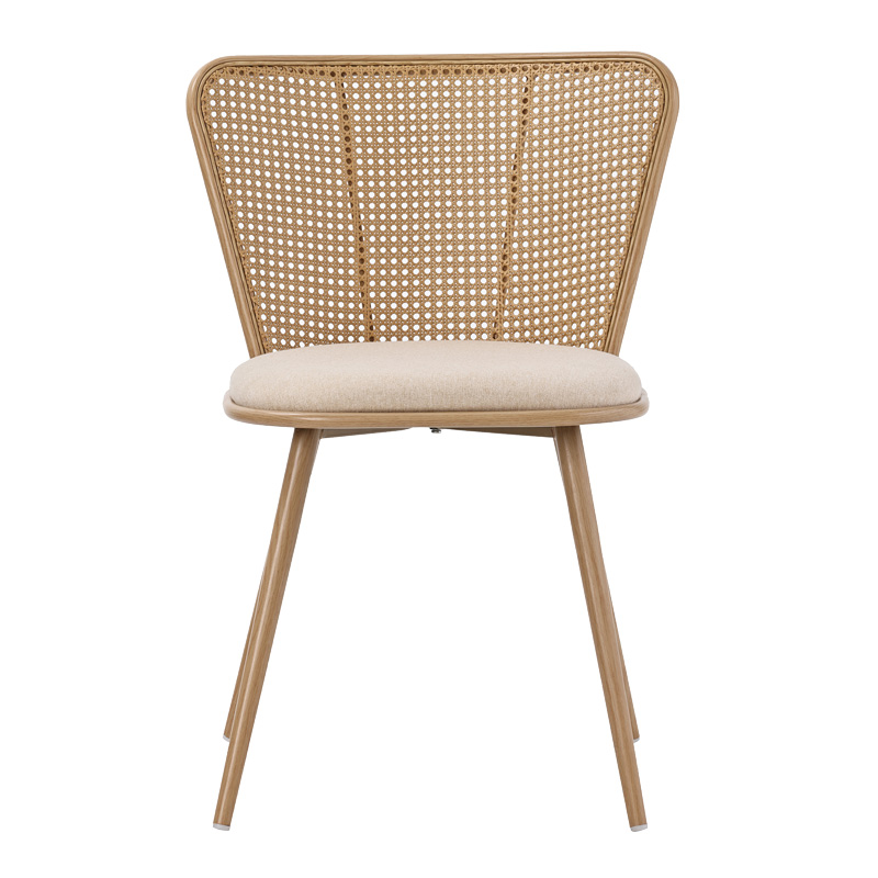 Καρέκλα Daniele pakoworld φυσικό pe rattan-μπεζ ύφασμα-φυσικό μέταλλο 46.5×57.5×77.5εκ