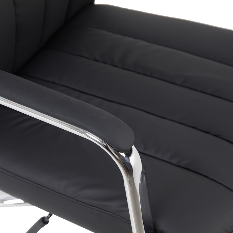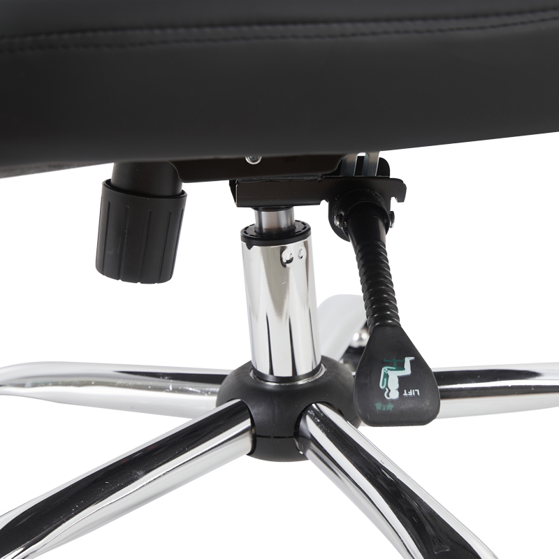 - Στήριξη σε πεντακτινωτή βάση χρωμίου 350mm με PU ροδάκια για αθόρυβη και ομαλή κύλιση
