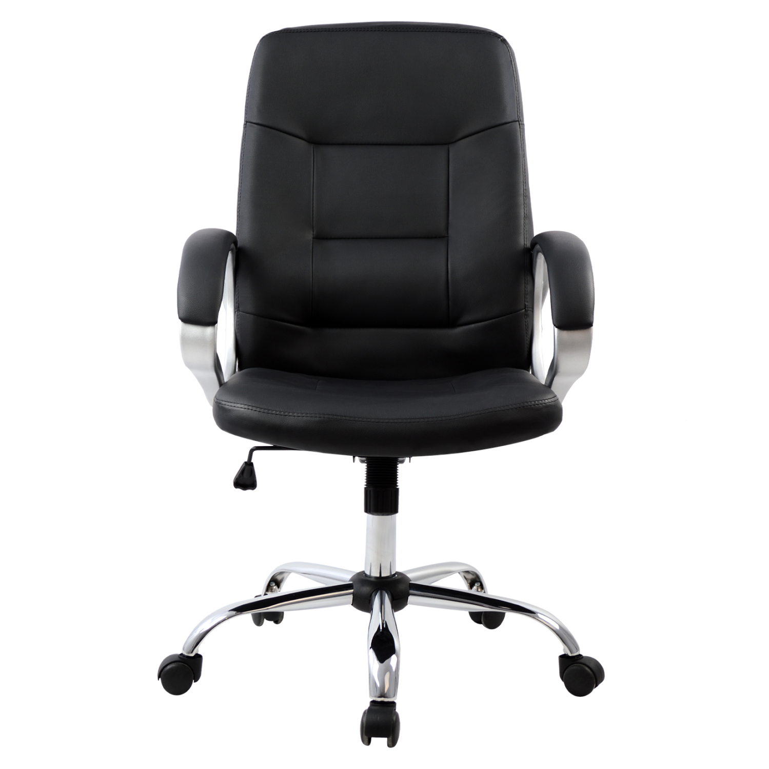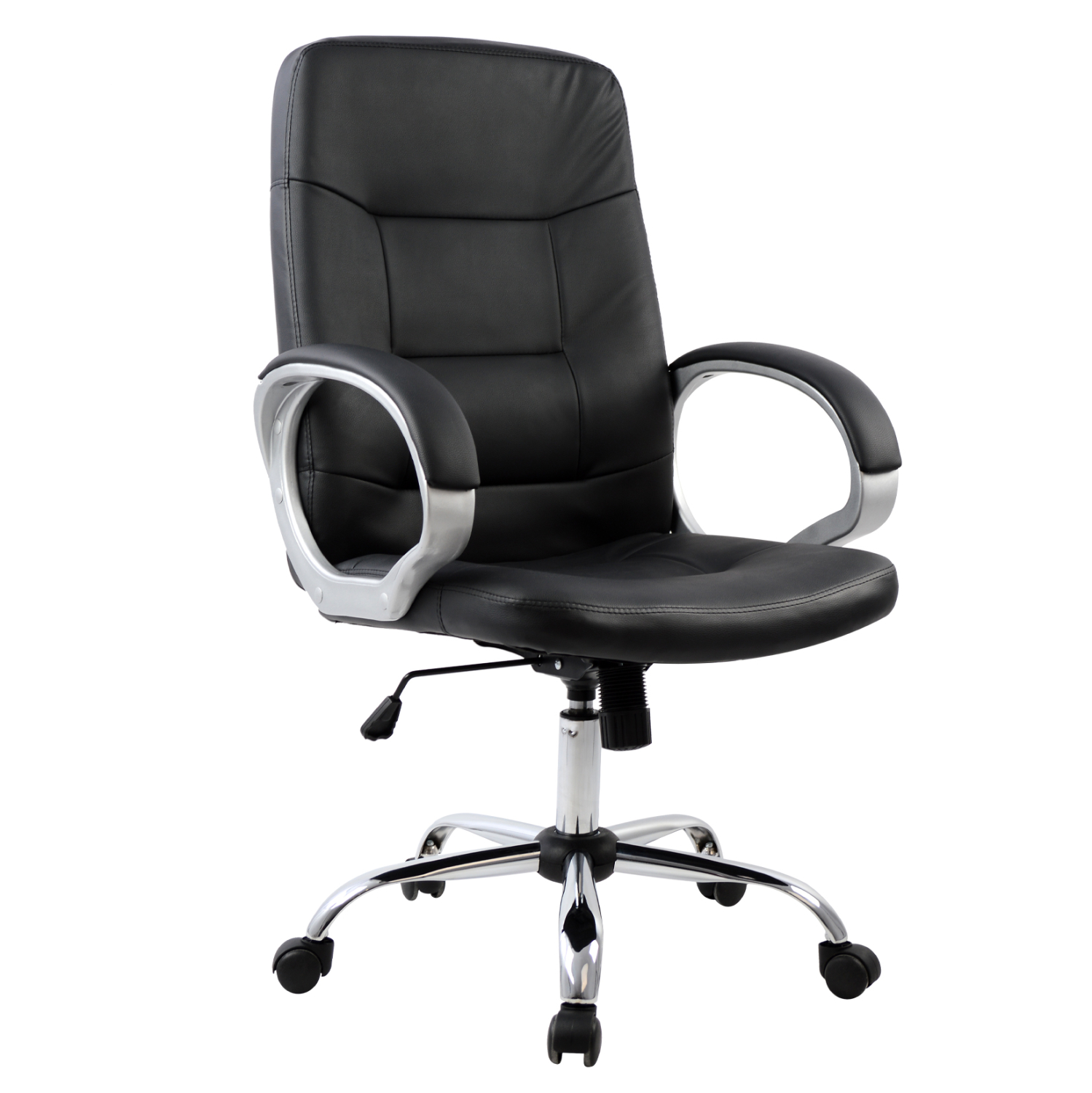 Διευθυντική καρέκλα γραφείου “IVERN” σε μαύρο χρώμα. Μια «πλούσια» καρέκλα γραφείου με ψηλά μπράτσα με κλίση και επενδυμένα με μια λεπτή στρώση αφρολέξ σε PU δέρμα. Η πλάτη είναι ψηλή με πλούσια στρώση από αφρώδη υλικά για άνεση κατά την χρήση και υποστηρίζει ολόκληρο τον κορμό σας, ενώ είναι επενδυμένη με υψηλής ποιότητας PU δέρμα , όπως επίσης και το φαρδύ και αναπαυτικό κάθισμα με την αναπαυτική επιφάνεια. Η βάση είναι χρωμιωμένη σε σχήμα «αστέρι».