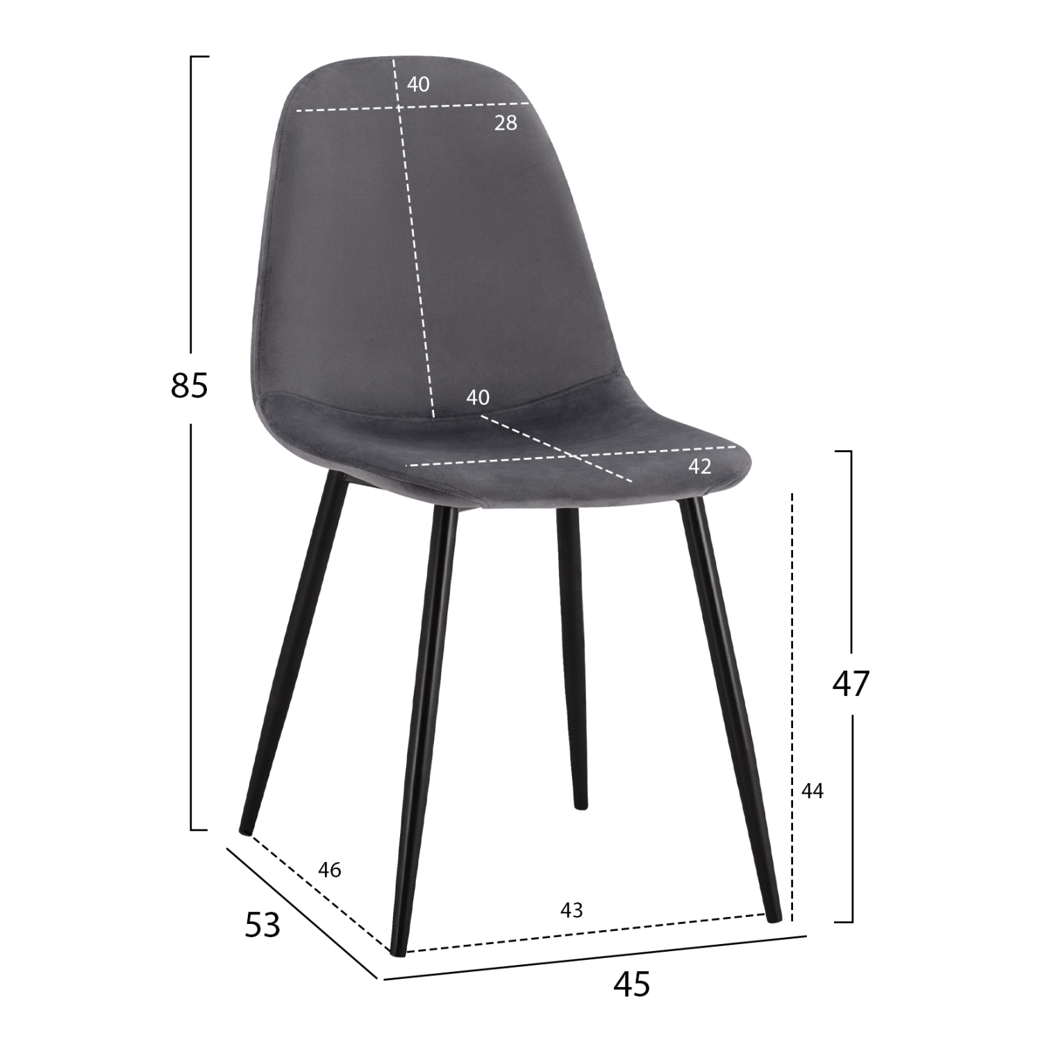 ΚΑΡΕΚΛΑ LEONARDO ΒΕΛΟΥΔΟ ΓΚΡΙ ΜΕ ΜΕΤΑΛΛΙΚΑ ΠΟΔΙΑ 45x53x85Υ εκ. HM00100.01