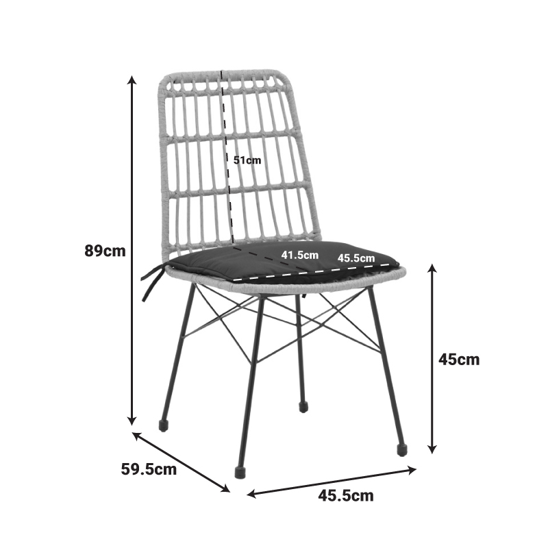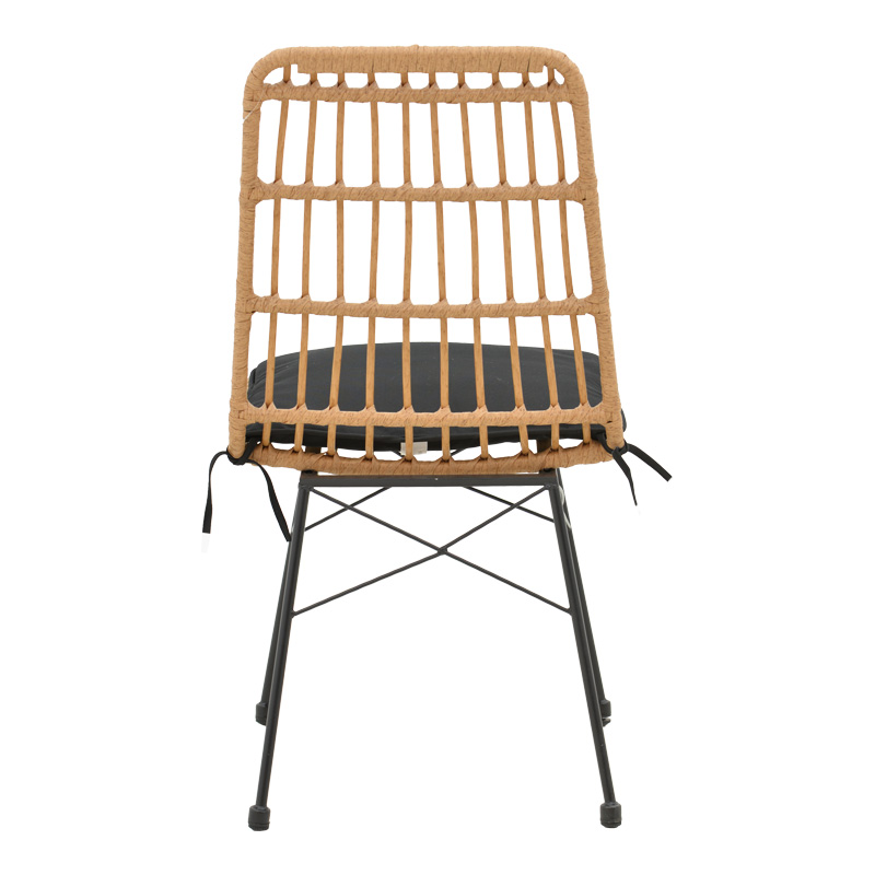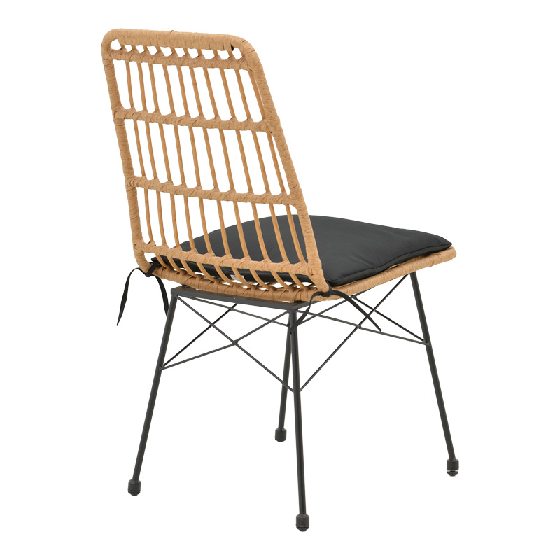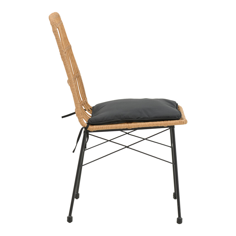 Καρέκλα Naoki pakoworld rattan σε φυσική απόχρωση με μαύρο μαξιλάρι και μεταλλικό μαύρο πόδι 45.5×59.5×89εκ