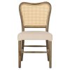 Η καρέκλα αυτή είναι μια φαρδιά καρέκλα για επαγγελματική χρήση, χωρίς μπράτσα απαράμιλλης ομορφιάς. Ο πανέμορφος σκελετός της είναι από ποιοτικό ξύλο σε καφέ χρώμα, ενώ η πλάτη σε σχήμα πεταλούδας είναι επενδυμένη με φυσικό rattan. Tο φαρδύ κάθισμα, από την άλλη, είναι επενδυμένο με λευκό ύφασμα. Μια όμορφη καρέκλα που θα αποτελέσει το κέντρο ενδιαφέροντος οπουδήποτε και αν τοποθετηθεί.