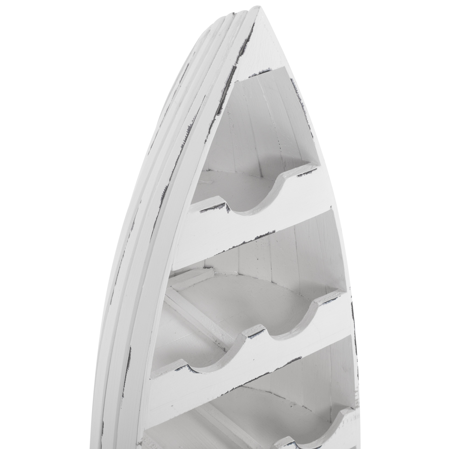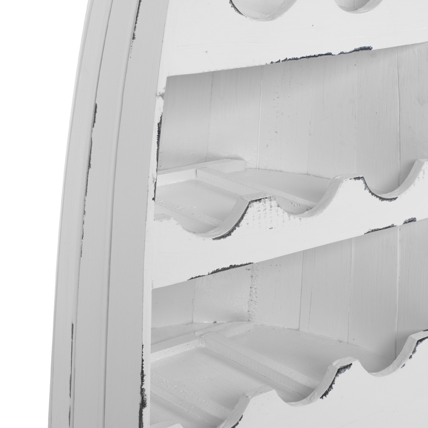 Η ξύλινη κάβα μπουκαλιών ΗΜ9493 σε λευκό αντίκ χρώμα, είναι χρησιμότατη για κάθε χώρο. Είναι κατασκευασμένη σε σχήμα βάρκας κάθετα στερεωμένης, με λαξευμένες αριστοτεχνικά 4 σειρές για τοποθέτηση 10 μπουκαλιών. Πρόκειται για μια πανέμορφη κατασκευή που αποτελεί τόσο κομμάτι διακόσμησης, όσο και πρακτικό αντικείμενο οργάνωσης και αποθήκευσης μπουκαλιών.
