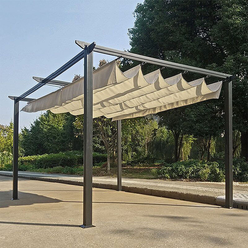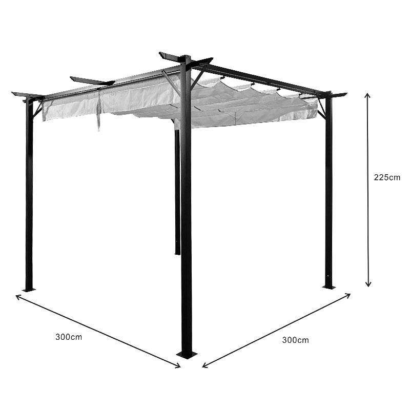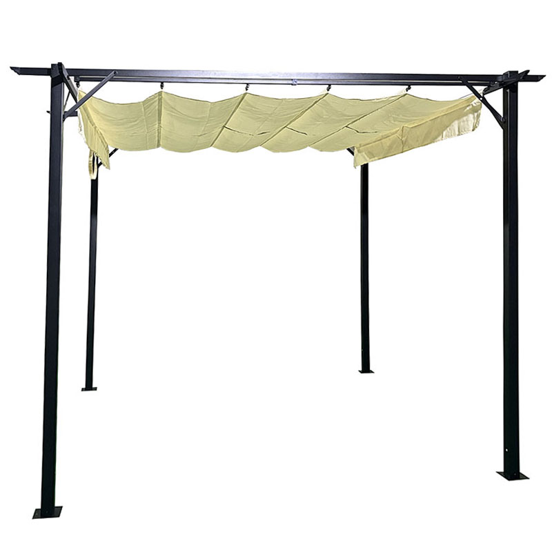 Κιόσκι κήπου Spectra pakoworld μαύρος μεταλλικός σκελετός – με συρόμενο κάλυμμα σε μπεζ απόχρωση 3x3m