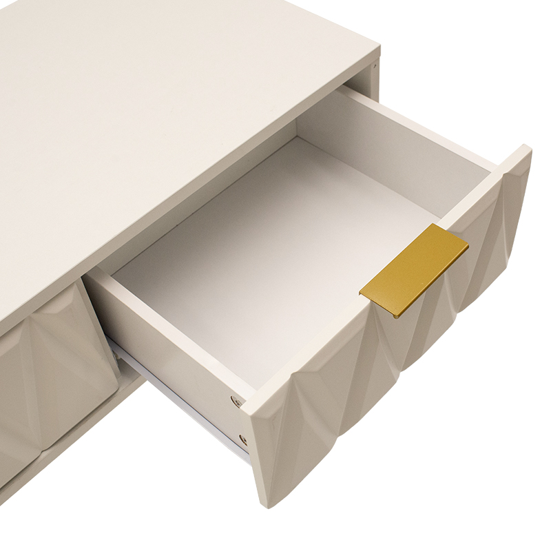 - Κατασκευή εσωτερικά από MDF με επένδυση μελαμίνης, σε χρώμα λευκό painting με ανάγλυφα σχέδια στις μετώπες.