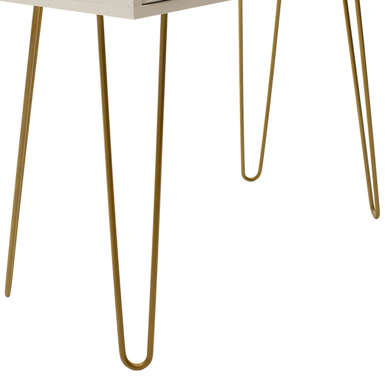- Φέρει καλαίσθητα μεταλλικά πόδια σε χρυσό χρώμα που εξυψώνουν το σύνολο και αναδεικνύουν το έπιπλο.