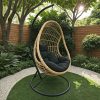 Κούνια φωλιά με βάση Cungo pakoworld μέταλλο μαύρο- pe rattan μπεζ με μαύρο μαξιλάρι 125x105x195εκ