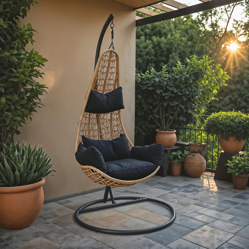 Κούνια κήπου Soleil pakoworld κρεμαστή pp σε φυσικό χρώμα και μαύρο μέταλλο 103x83x200εκ